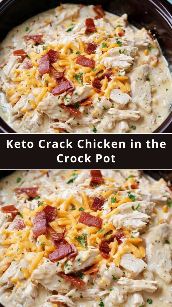 “Keto Crack Chicken in the Crock Pot – Creamy, Cheesy, and Low-Carb!” This easy crockpot keto crack chicken recipe is a rich, flavorful dish made with tender shredded chicken, cream cheese, sour cream, cheddar, and crispy bacon. Perfect for busy weeknight dinners or meal prep, this slow cooker crack chicken is low in carbs, high in protein, and packed with flavor. Serve it over cauliflower rice, zucchini noodles, or enjoy it as a dip. It’s a delicious, family-friendly keto comfort food you’ll make again and again!